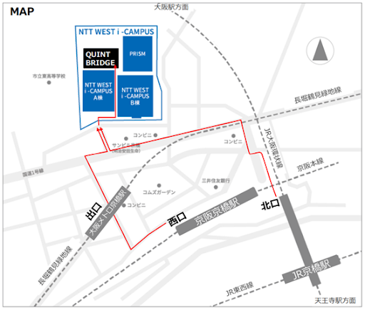 〒534-0024 大阪府大阪市都島区東野田町4丁目15番82号 ![]() JR大阪環状線 「京橋駅」北口改札より徒歩約10分 京阪本線 「京橋駅」西口改札より徒歩約10分 地下鉄長堀鶴見緑地線 「京橋駅」3番出口より徒歩約5分 |